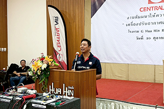 บริษัท เซ็นทรัลแอร์ (ประเทศไทย) จำกัด จัดงานอบรมให้ความรู้เกี่ยวกับเครื่องปรับอากาศ CENTRAL AIR ในพื้นที่จังหวัดประจวบคีรีขันธ์ ร่วมกับ บริษัท ภรภัทรแอร์ แอนด์ เซอร์วิส จำกัด ณ โรงแรม G Hua Hin Resort & Mall ทีมงานผู้เชี่ยวชาญจากเซ็นทรัลแอร์แนะนำผลิตภัณฑ์เครื่องปรับอากาศ วิธีการติดตั้ง วิธีการใช้งาน วิธีการแก้ไขปัญหาที่ถูกต้อง และเทคนิคการตรวจเช็คเครื่องปรับอากาศระบบอินเวอร์เตอร์ รวมไปถึงการตอบคำถามและข้อสงสัยให้ข้อมูลกับช่างเทคนิคในเขตพื้นที่จังหวัดประจวบคีรีขันธ์ และใกล้เคียง เพื่อเป็นการส่งเสริมและพัฒนาทักษะความรู้เกี่ยวกับผลิตภัณฑ์เครื่องปรับอากาศ CENTRAL AIR นำทักษะความรู้ความสามารถและความเชี่ยวชาญ นำไปใช้เพื่อดูแลการให้บริการแก่ลูกค้าได้อย่างมืออาชีพ